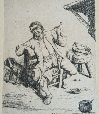 90,00 €Interessante acquaforte derivata da una composizione del celebre maestro olandese Adriaen Van Ostade (1610-1685), interprete raffinato della vita popolare del XVII secolo. La stampa fu successivamente tradotta in acquaforte dall’incisore scozzese David Deuchar (1743-1808), noto per le sue copie e reinterpretazioni dei grandi maestri della grafica olandese.