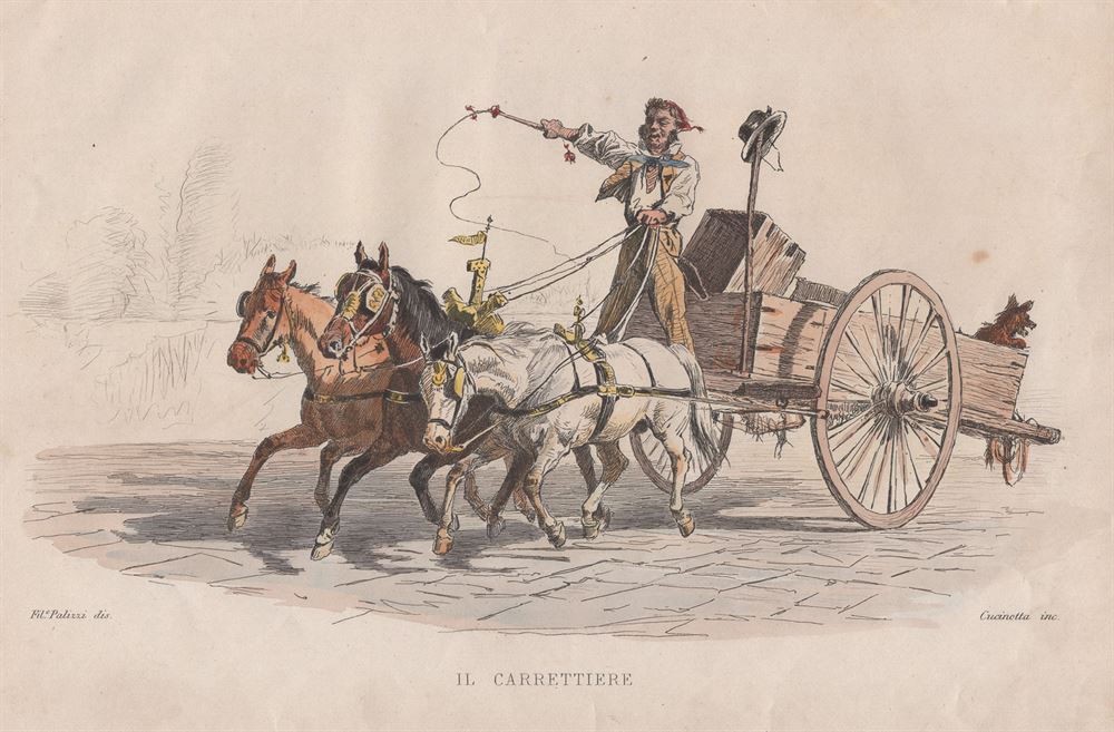 Il Carrettiere It is an engraving made by Philip Palizzi nel 1853, utilizzando la tecnica del Burin al delineato acquarellato.