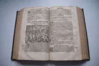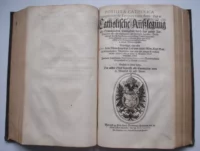 Catholic Postscript is a theological work published in 1577 in Cologne by Calenius and Erven J. Quentels. It is the extremely rare first edition of the work of Jakob Feucht (1540-1580), an important exponent of Catholic theology of the 16th century. The work is divided into two parts and features a rich illustrative apparatus composed of woodcuts, some of which are attributed to the famous German artist Hans Sebald Beham (1500-1550). Beham, one of the "Little Masters", is known for his detailed and innovative engravings.