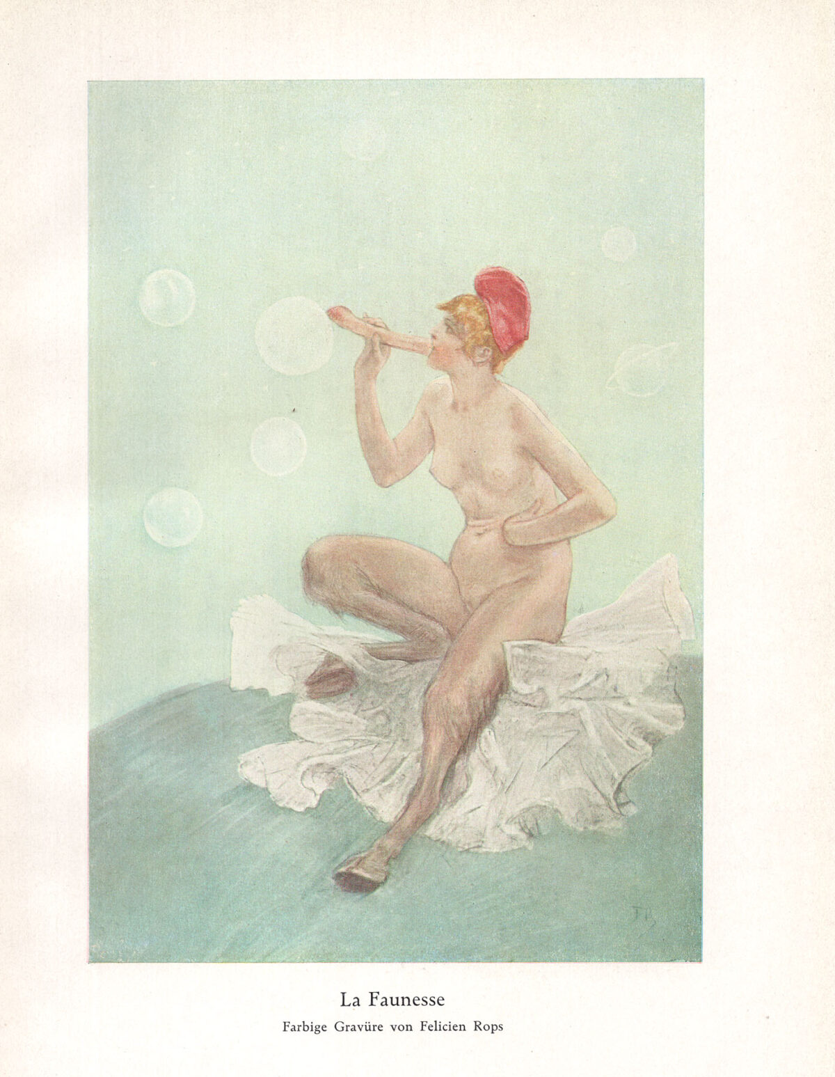 La Faunessa Incisione colorata di Felicien Rops stampa erotica