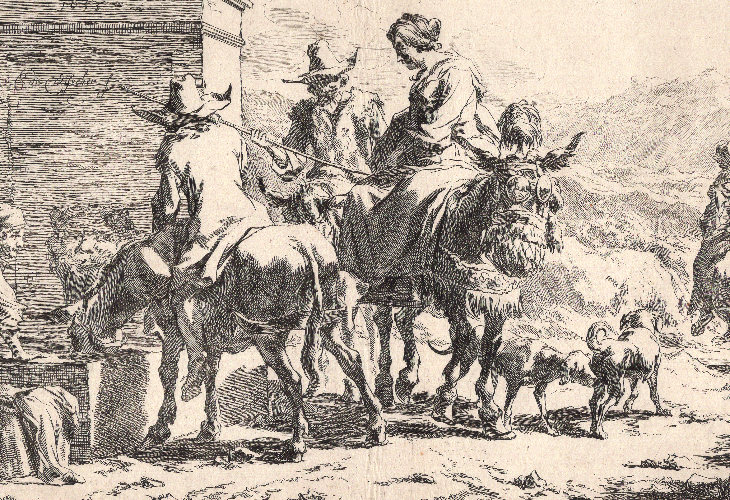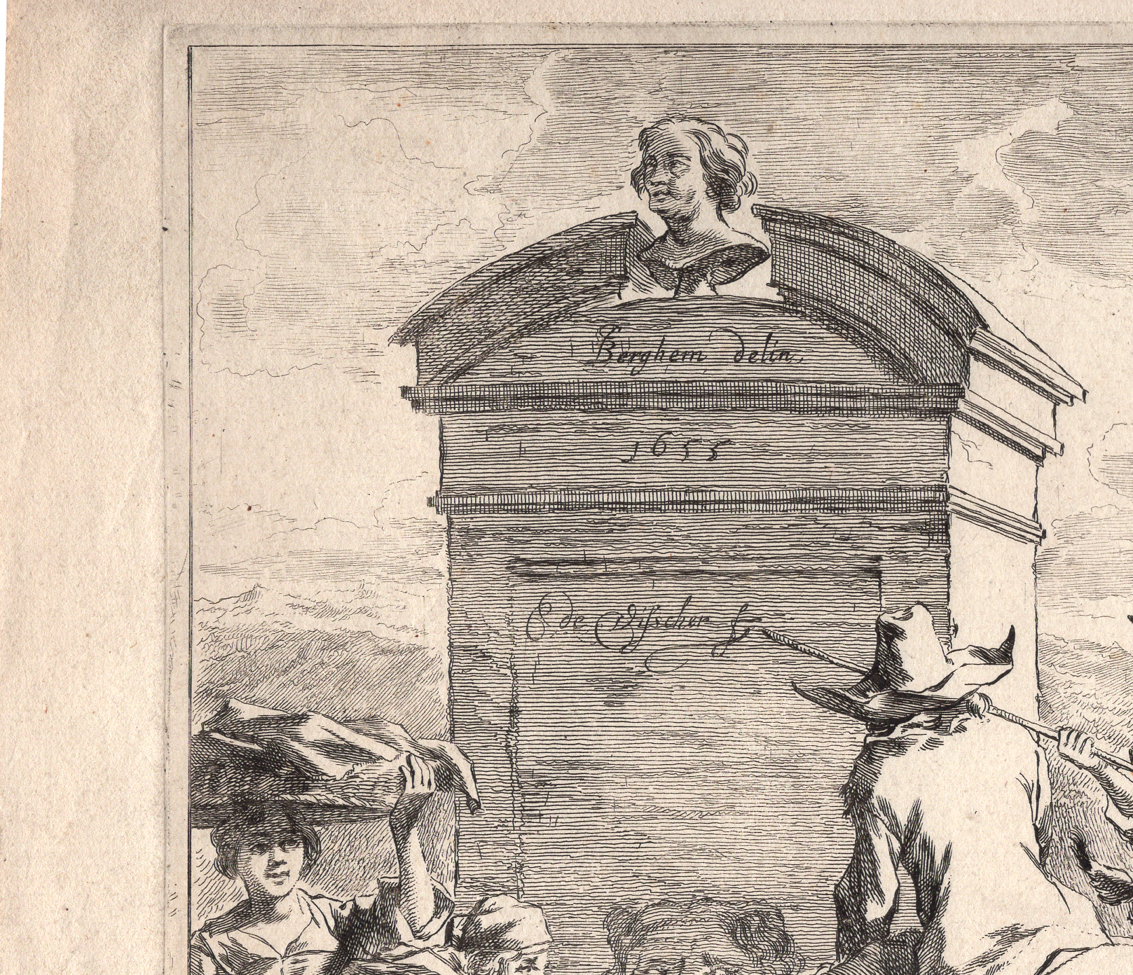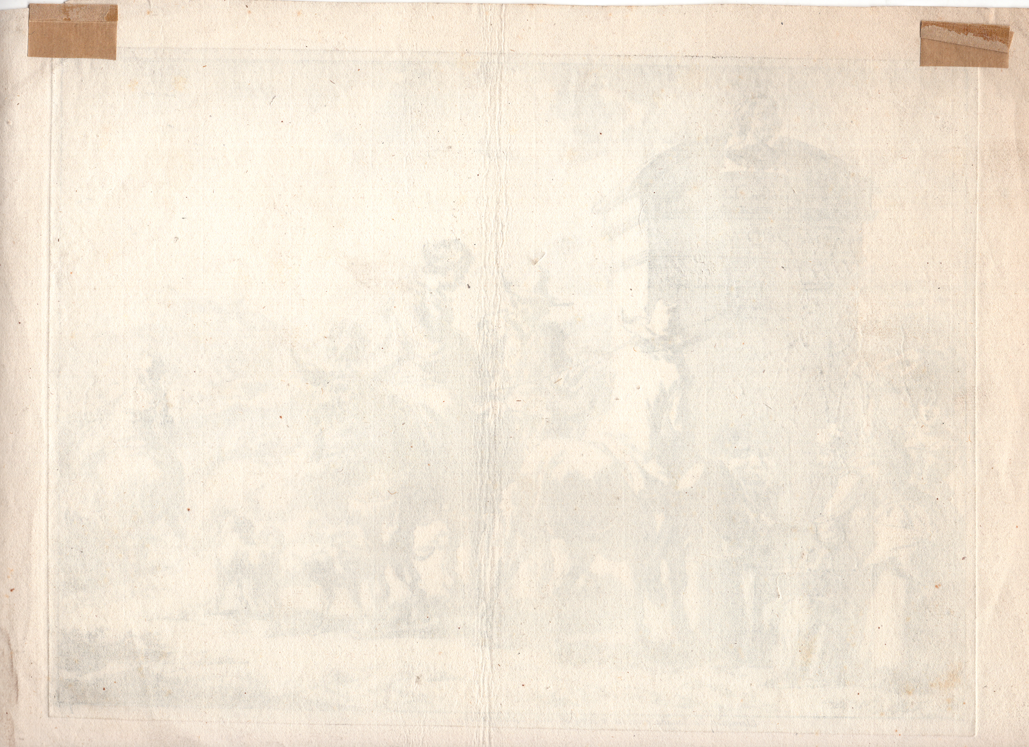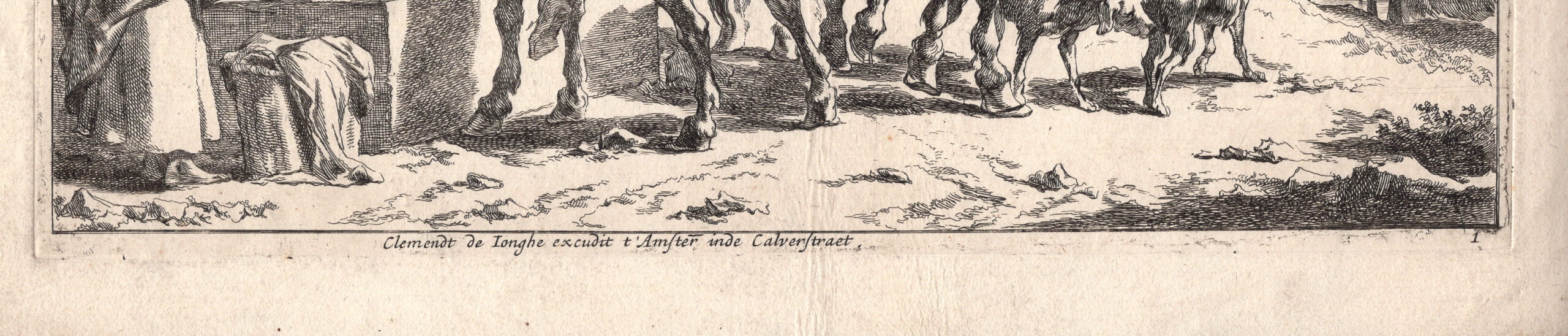 Acquaforte su carta vergellata cm 17×25 alla battuta del rame su foglio cm. 20×27; cm.20×27 alla battuta del rame su foglio cm.23×30. In alto a sinistra in lastra si legge Berghem delin. 1655, e in basso a sinistra Berchem invent. Ottime condizioni.