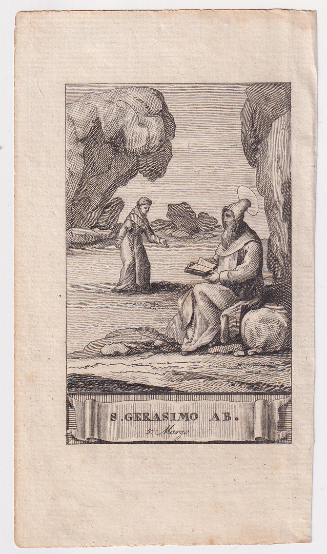 St. Gerasimo It is a copper engraving made in 1797, part of the famous work Lives of the Saints for each day of the Year with copper portraits, published in Florence.