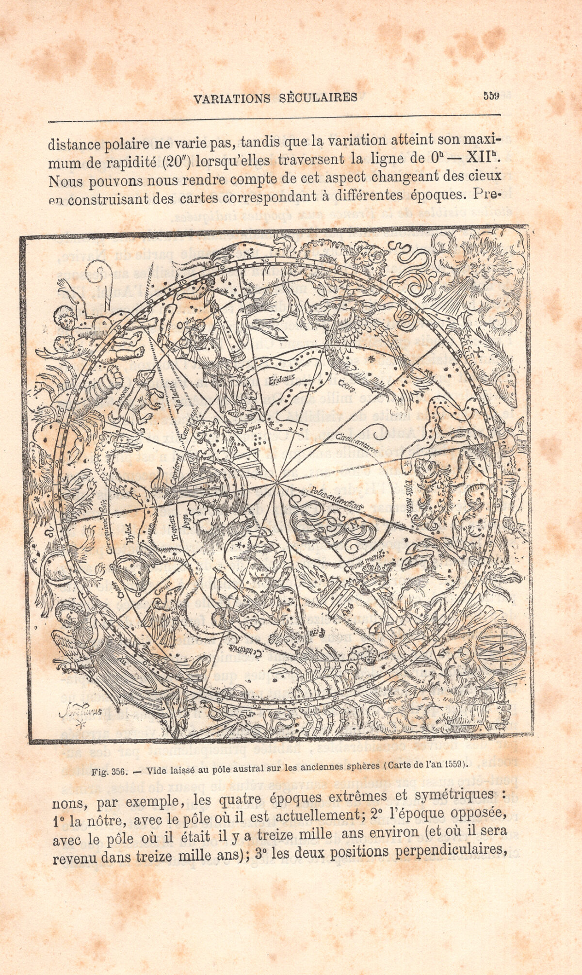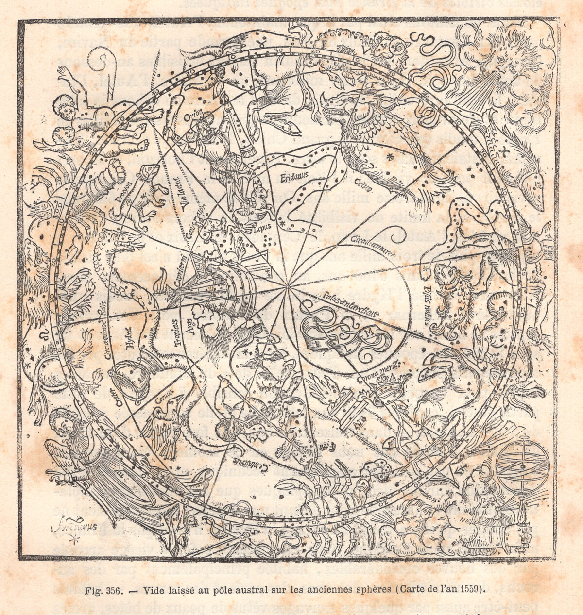 Veduta del Polo australe in una carta del 1559, Costellazione, Zodiaco, 1882