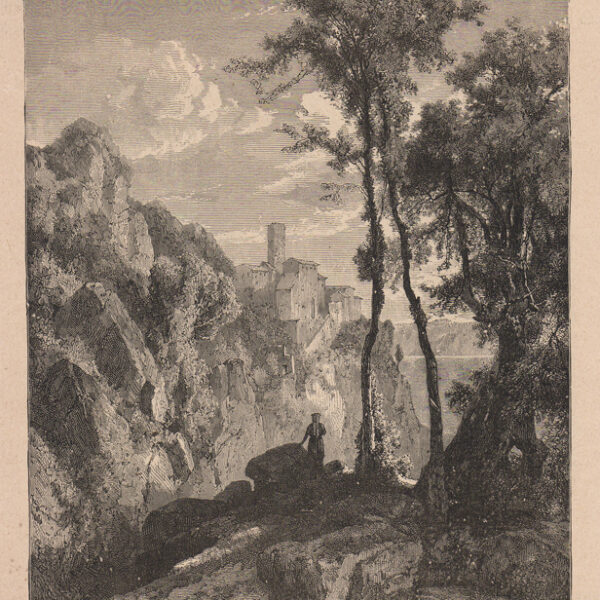 Vicovaro, 1829 è un’incisione a bulino su rame che offre una suggestiva veduta animata del paesaggio.