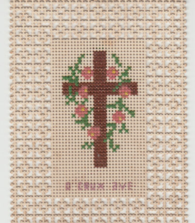 Questa opera, di origine austriaca, è caratterizzata da una tecnica di siderografia su pizzo traforato, che conferisce un aspetto unico e delicato all’immagine sacra.