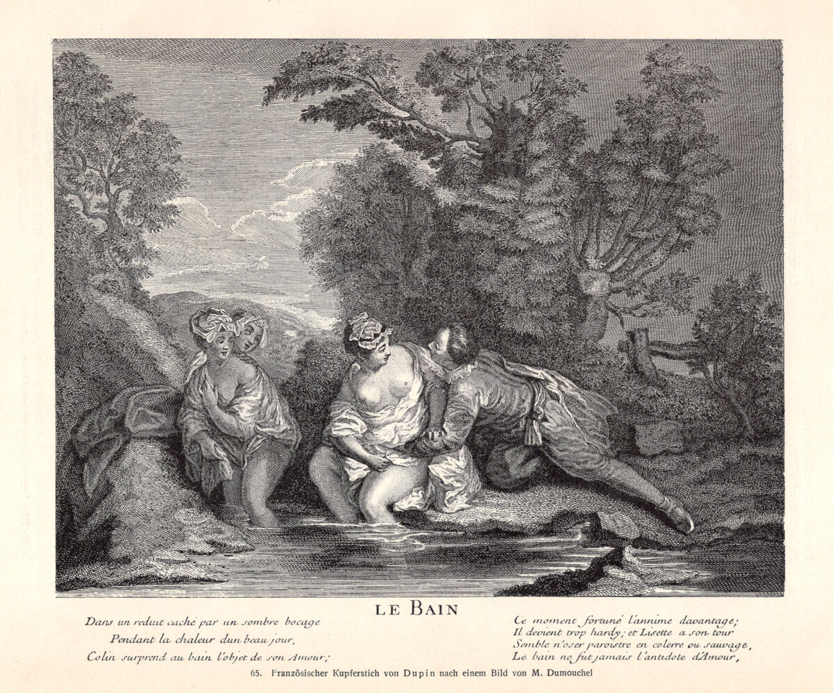 Il bagno Incisione francese di Dupin da un quadro di M. Dumouchel stampa erotica