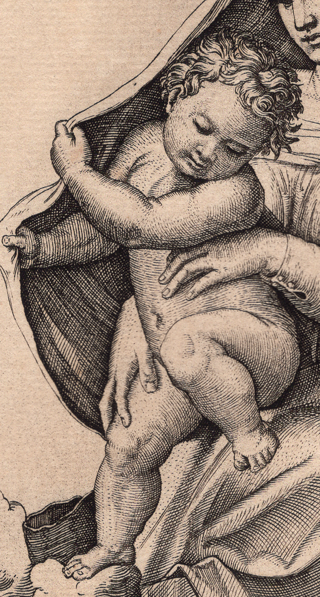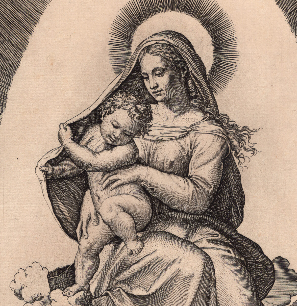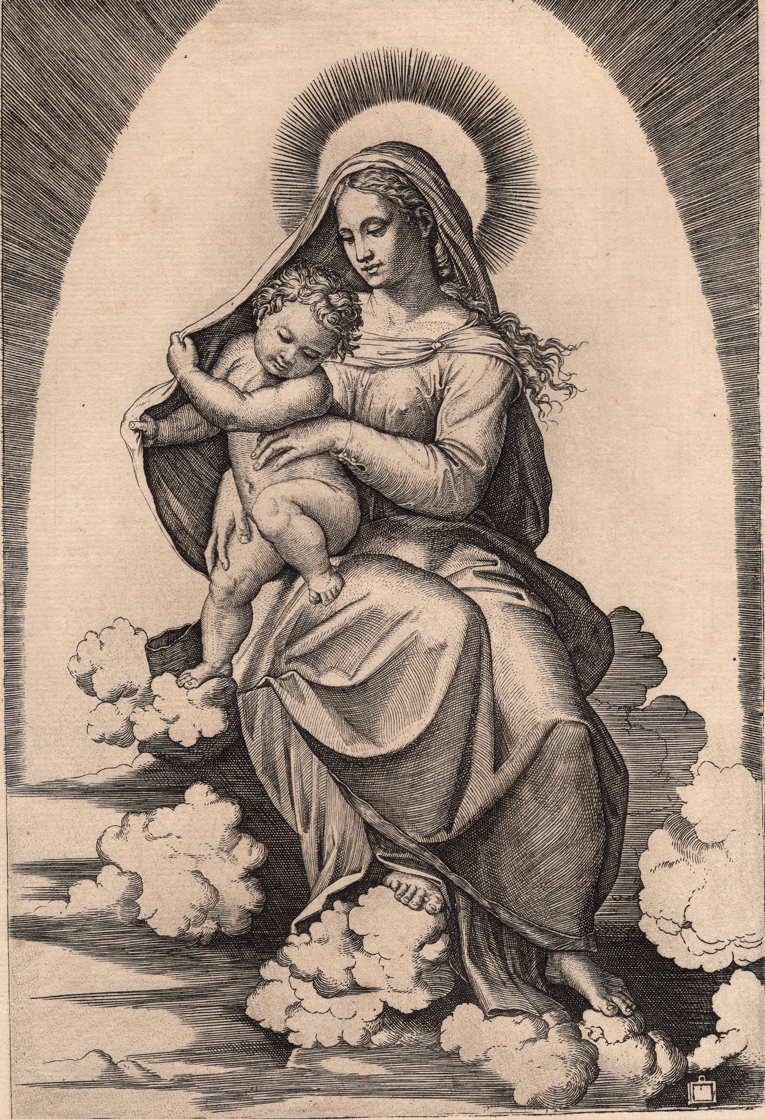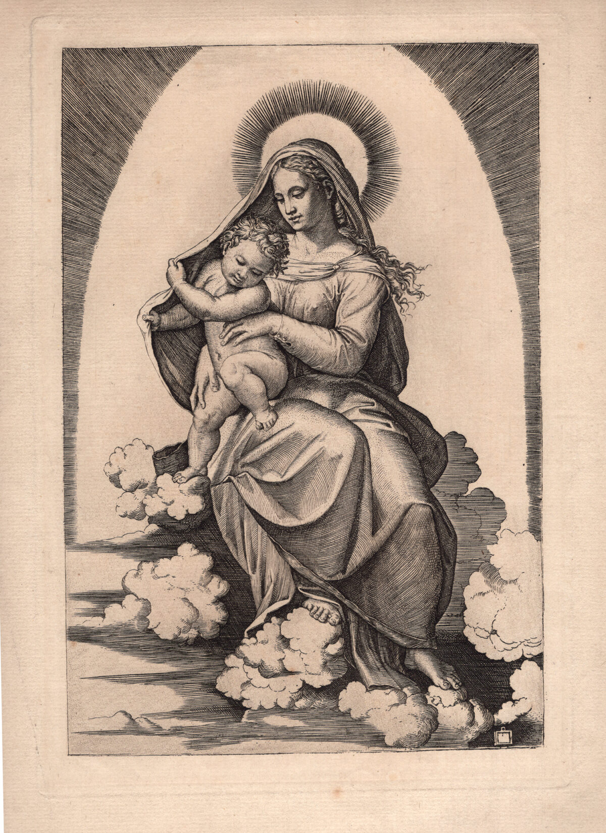 Marcantonio Raimondi (c.1480-1527/34) – Madonna con Bambino sulle nuvole