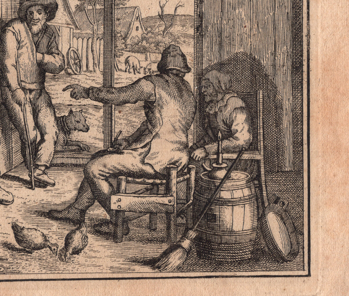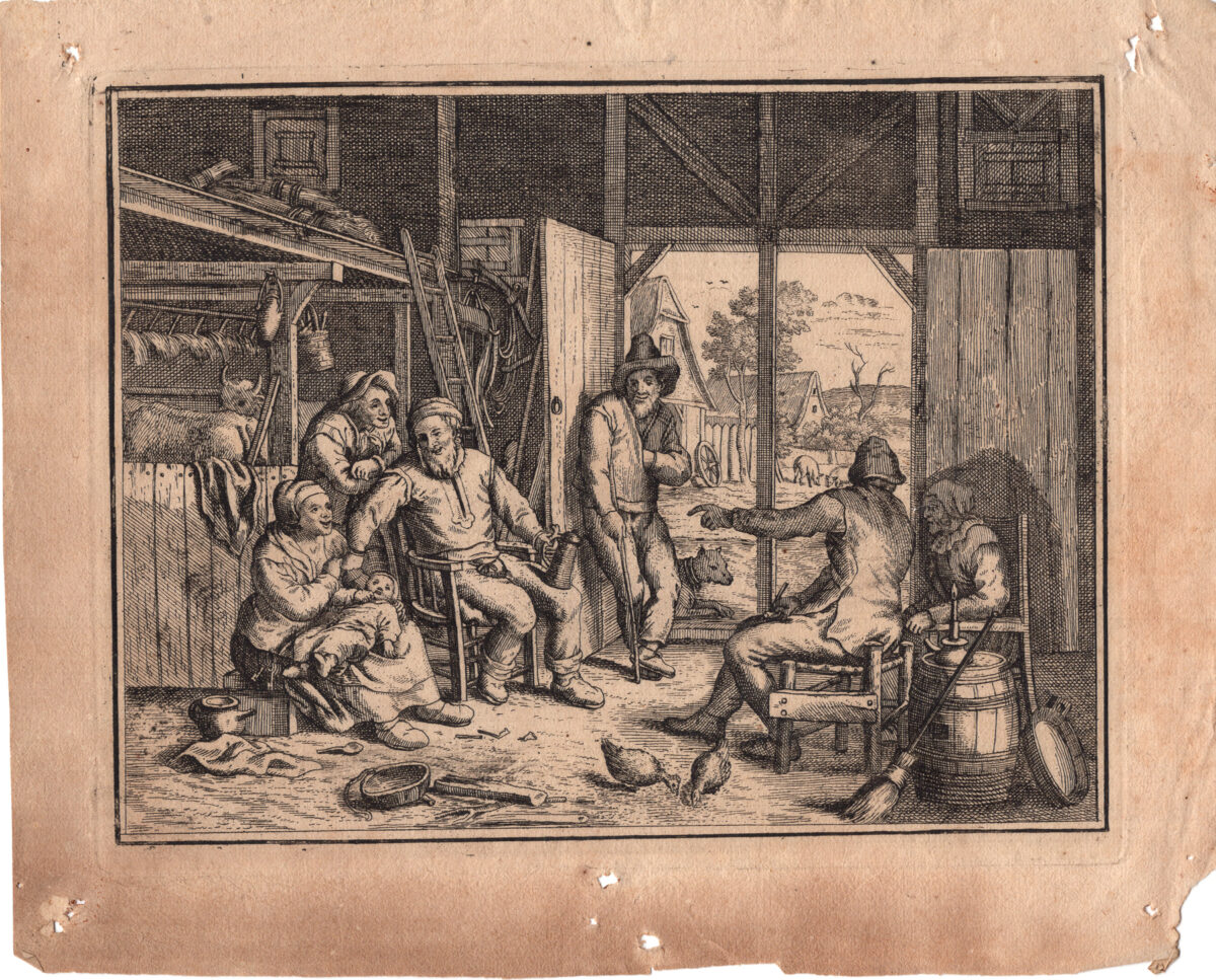 Matthias Scheits (Amburgo, 1630 – 1700), Compagnia di uomini e donne in un fienile.