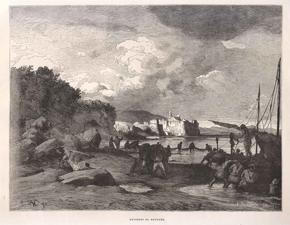 Neptune c'est une gravure réalisée par Adolf Clos en 1877, tiré de l'opéra Italie par J. Gourdault.