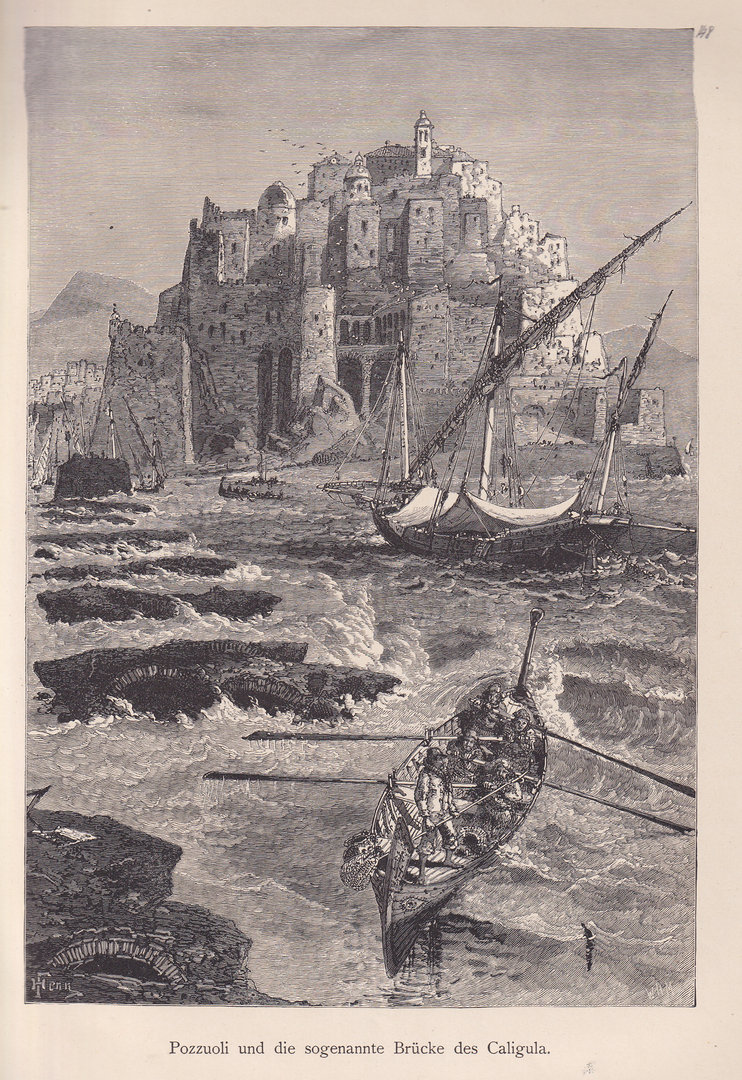 Pouzzoles depuis la jetée de Caligula è un’incisione xilografica realizzata nel 1884, che rappresenta un affascinante panorama di Pozzuoli.