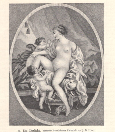 Il Tenero. Galante incisione francese a colori di J. B. Huet stampa erotica