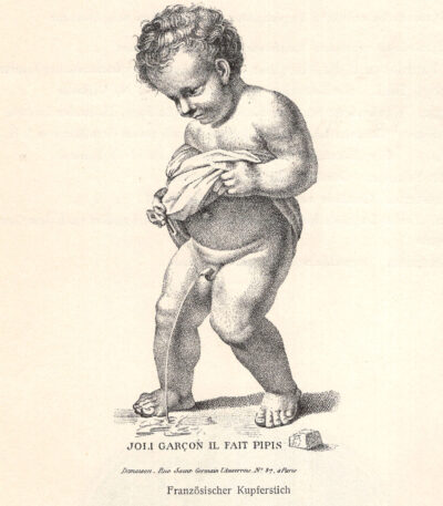 Ragazzo che fa la pipì Incisione francese stampa erotica
