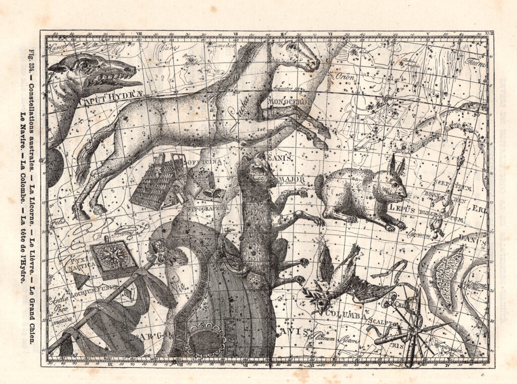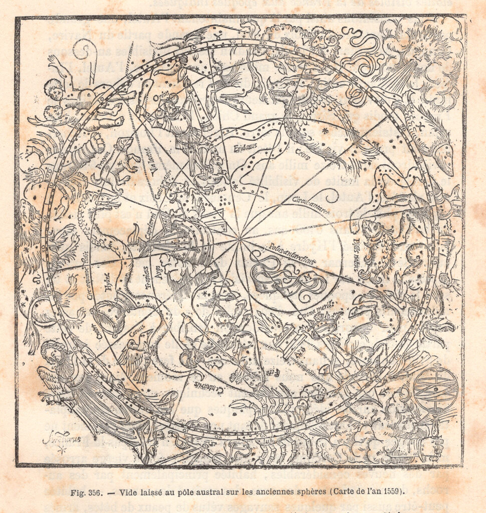 Rappresentazione delle costellazioni, tratta da Les Étoiles et les Curiosités du Ciel di Camille Flammarion, pubblicato a Parigi nel 1882.