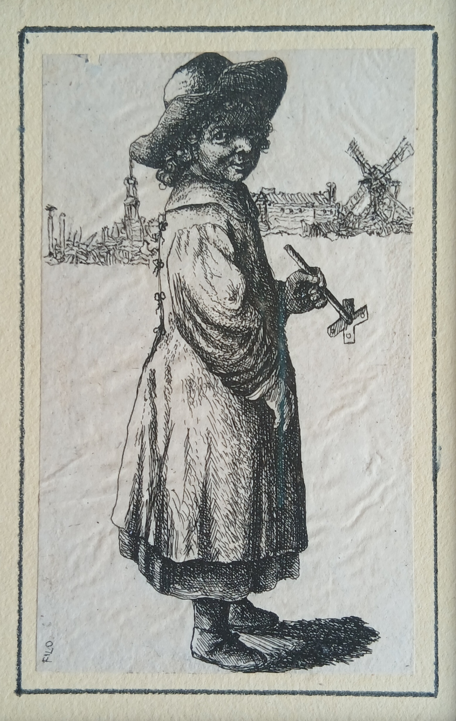 Bambino con giocattolo, da Rembrandt, incisa da David Deuchar, con intervento artistico di Filippo Mattarozzi