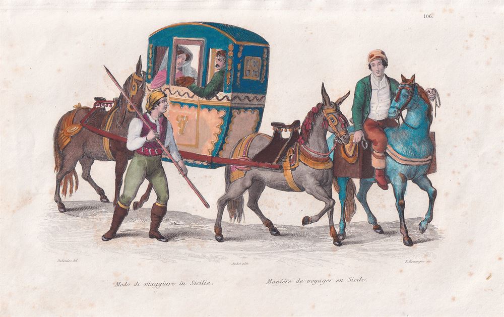 Costumi Siciliani è un’incisione realizzata nel 1835, che rappresenta una Carrozza di Sicilia.