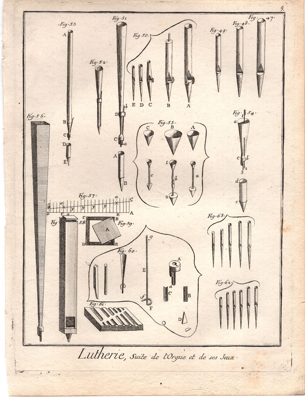 Diderot e D’Alembert, 1778, mestieri, liutaio, strumenti musicali, organo n. 8
