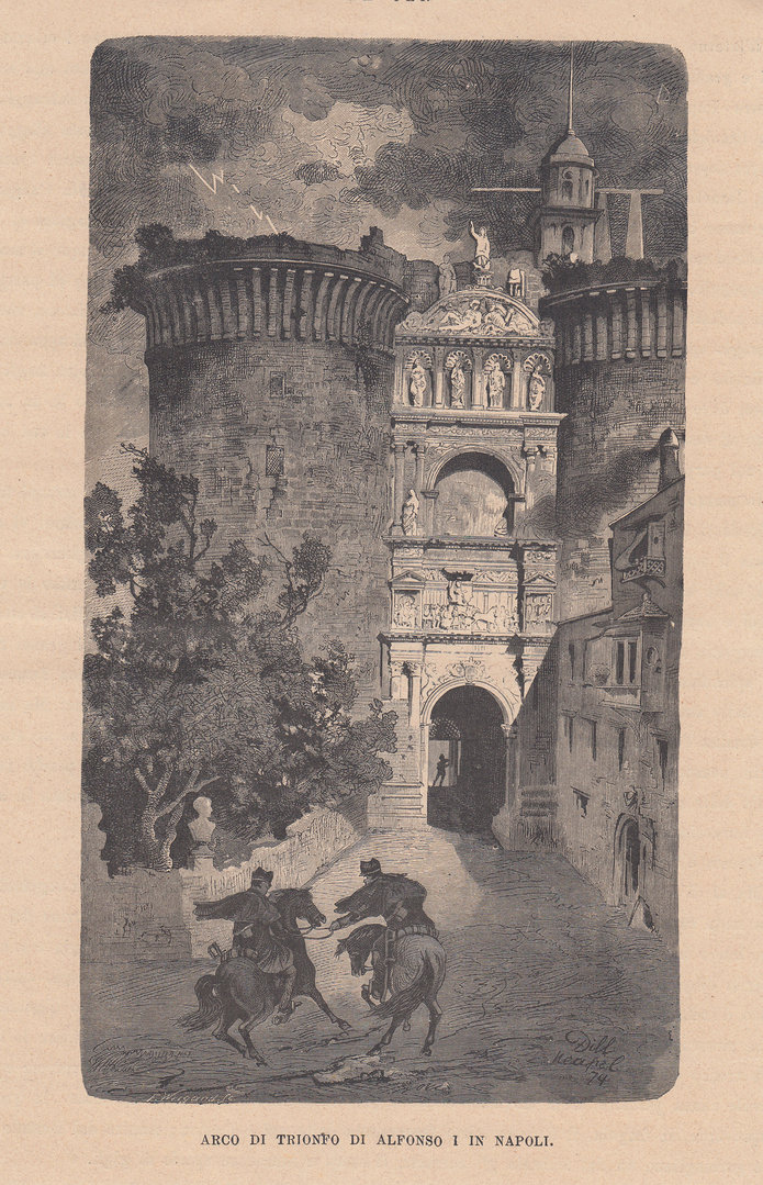 Napoli, Maschio Angioino è una xilografia del 1874 che rappresenta l’Arco di Trionfo di Alfonso I a Napoli.