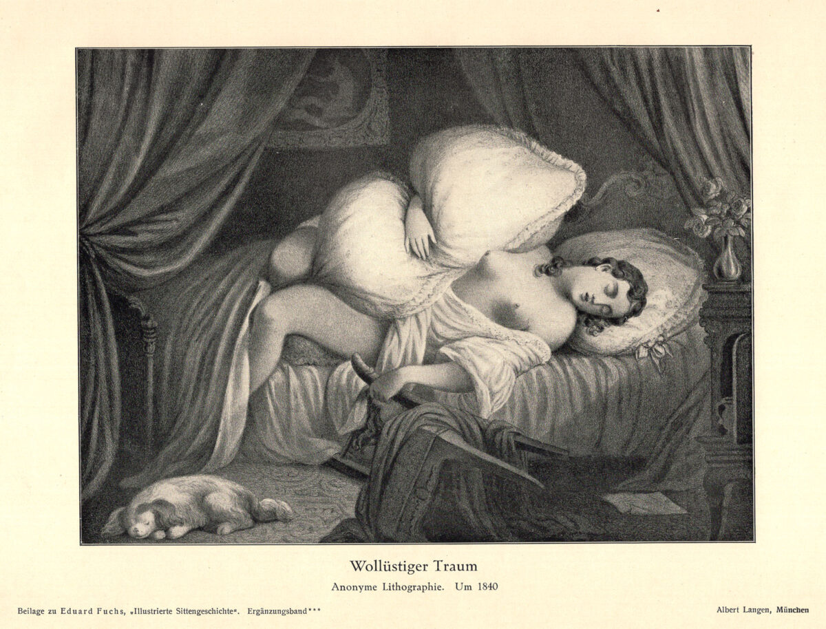 Sogno voluttuoso Litografia anonima. 1840 stampa erotica