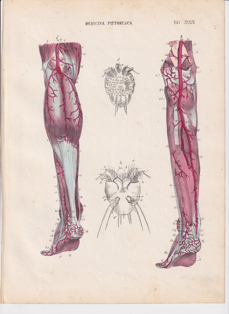 Tavola anatomica, apparato circolatorio, muscoli, 1839