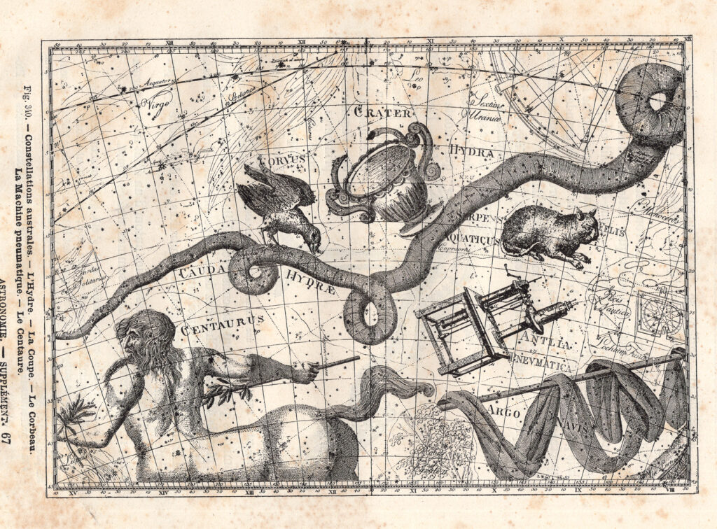 Rappresentazione delle costellazioni, tratta da Les Étoiles et les Curiosités du Ciel di Camille Flammarion, pubblicato a Parigi nel 1882.