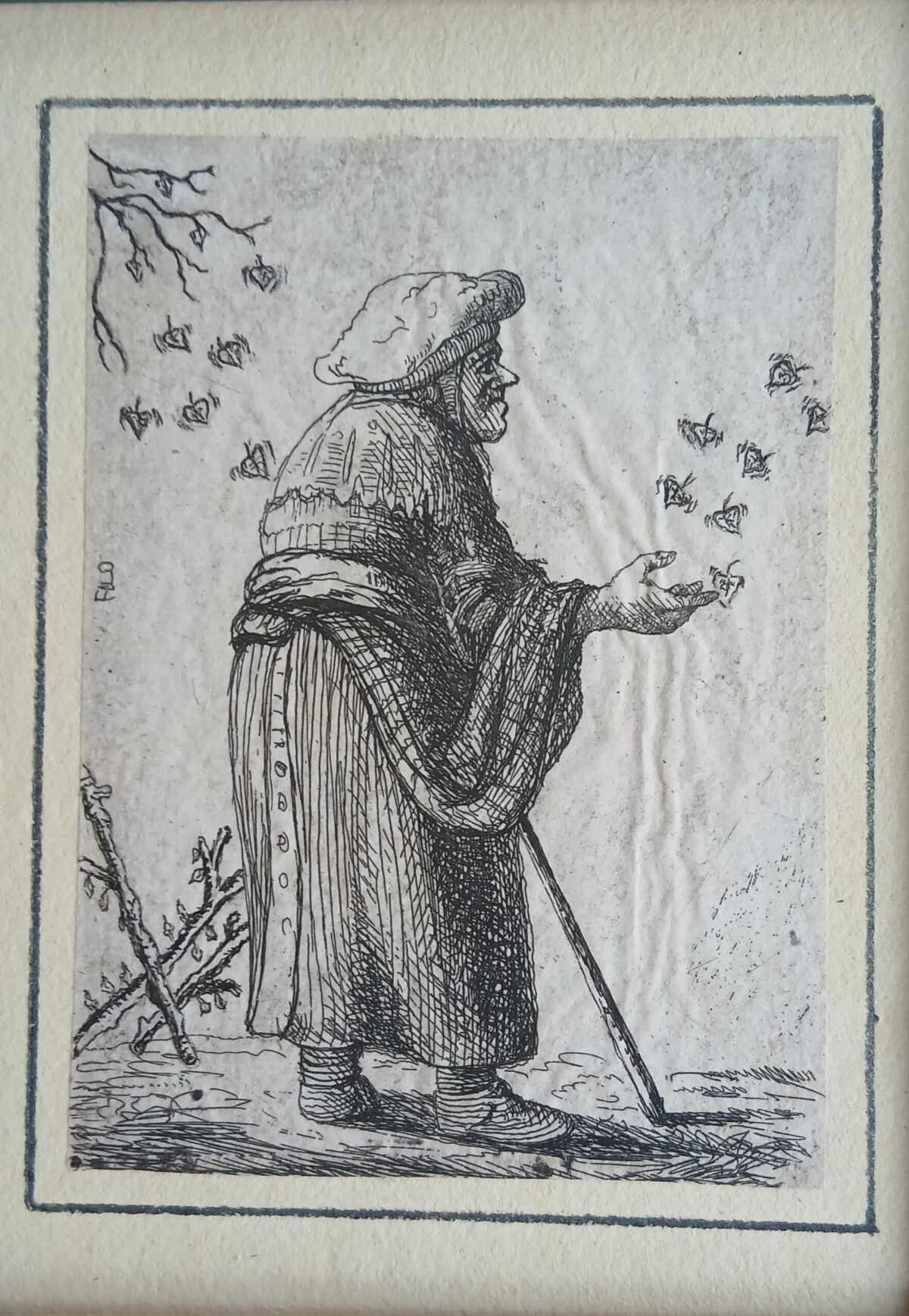 Vecchia con farfalle, da Van Ostade, incisa da David Deuchar, con intervento artistico di Filippo Mattarozzi