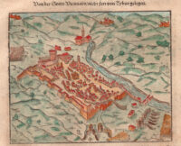 Mappa di Vicovaro, Roma, Lazio, Munster, dalla Cosmographia Universalis, 1614