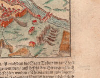 Vicovaro, Munster, 1614 è una pagina estratta dalla Cosmographia Universalis di Sebastian Munster, che offre una suggestiva veduta di Vicovaro, situata nel Lazio.