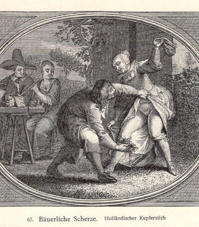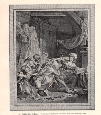 Barzellette pericolose. Incisione francese di Voyer da un’immagine di Touze stampa erotica